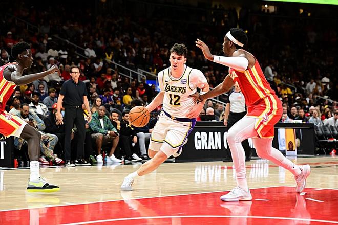 本场比赛中,湖人的替补侧翼新援杰克-拉拉维亚(Jake LaRavia)的状态出现了明显的下滑。拉拉维亚全场出场24分52秒,投篮8中2,三分线外3中0,罚球2中2,得到了6分1篮板3助攻1抢断的数据,还有4次犯规,正负值为-9。拉拉维亚可以说是在攻防两端都没有发挥出自己应有的水准,他的进攻效率非常糟糕,他的得分能力和投射能力都没有发挥出来,他也是浪费了不少投篮机会。不仅如此,拉拉维亚在防守端的表现也同样非常一般,他的个人防守能力也同样没有发挥出来,他的专注度也存在着明显的问题,他也是被对手各种打爆的存在。很显然,拉拉维亚在场上时球队的局面也是不太理想的,也就是先发球员们的能力足够出色,他的糟糕表现也没有影响到球队的这场胜利。